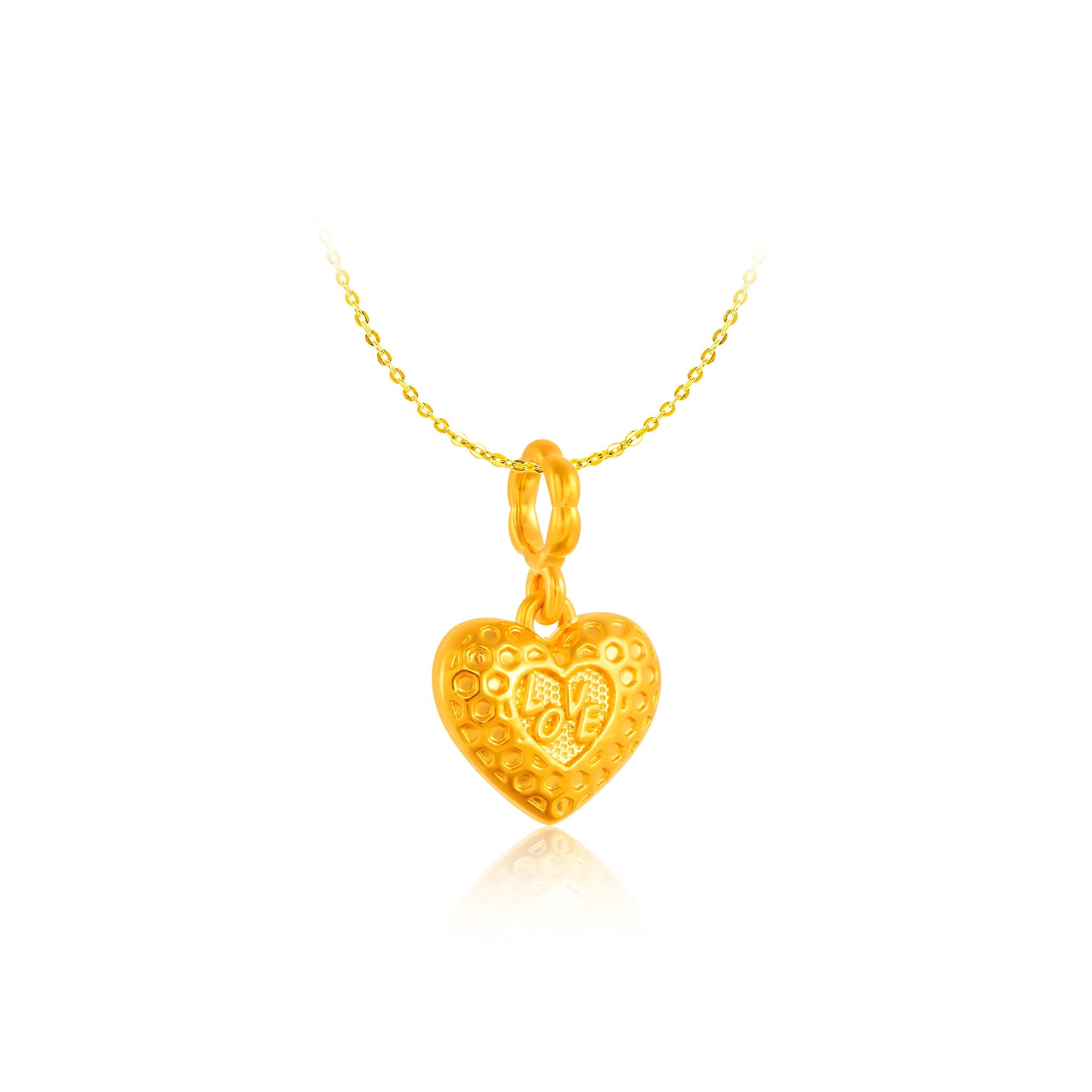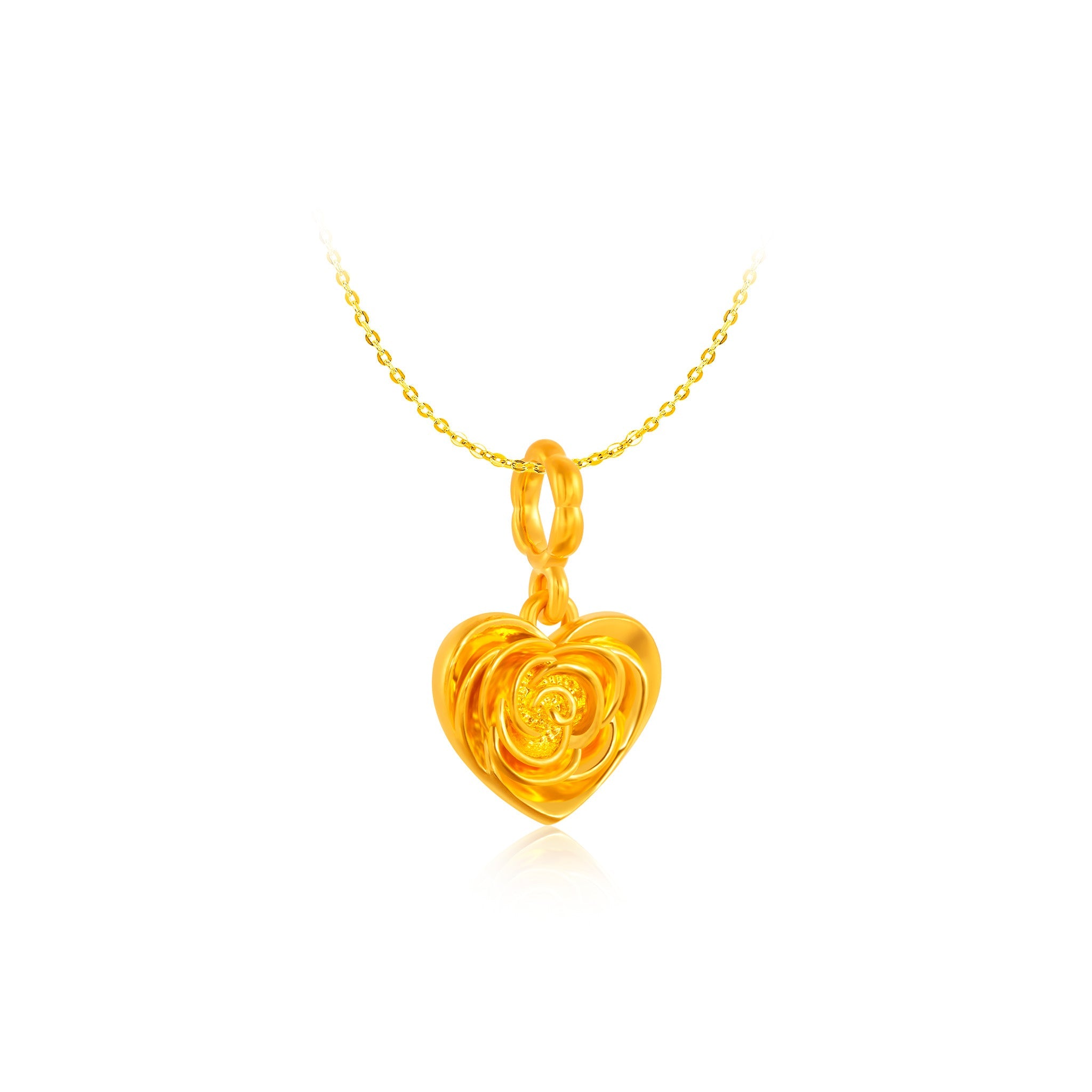 Delicately crafted in radiant 916 gold, the Rose Heart Pendant symbolises love in full bloom. Featuring a graceful rose embraced within a heart, this meaningful design represents romance, devotion, and heartfelt emotions. The intricate details reflect refined craftsmanship, making it a timeless expression of love and elegance.