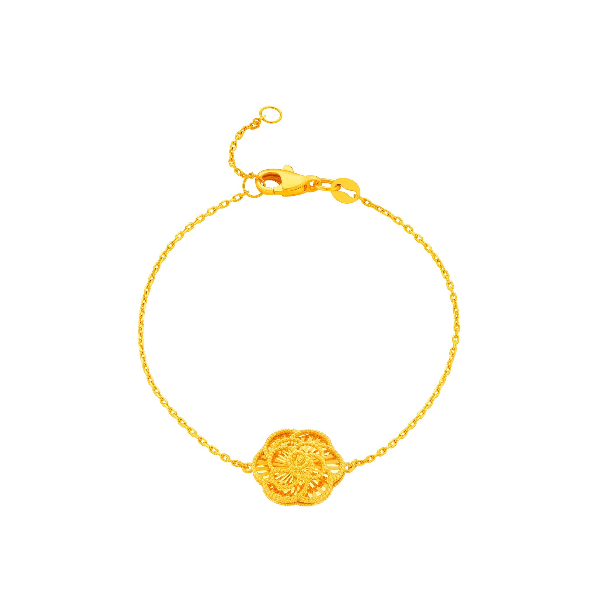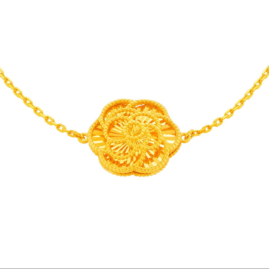 A symbol of love, admiration, and devotion, the 916 Gold Camelia Bracelet captures the gentle charm of the camellia bloom. Made with 916 gold for lasting value, it is a meaningful gift to celebrate special moments and cherished relationships.