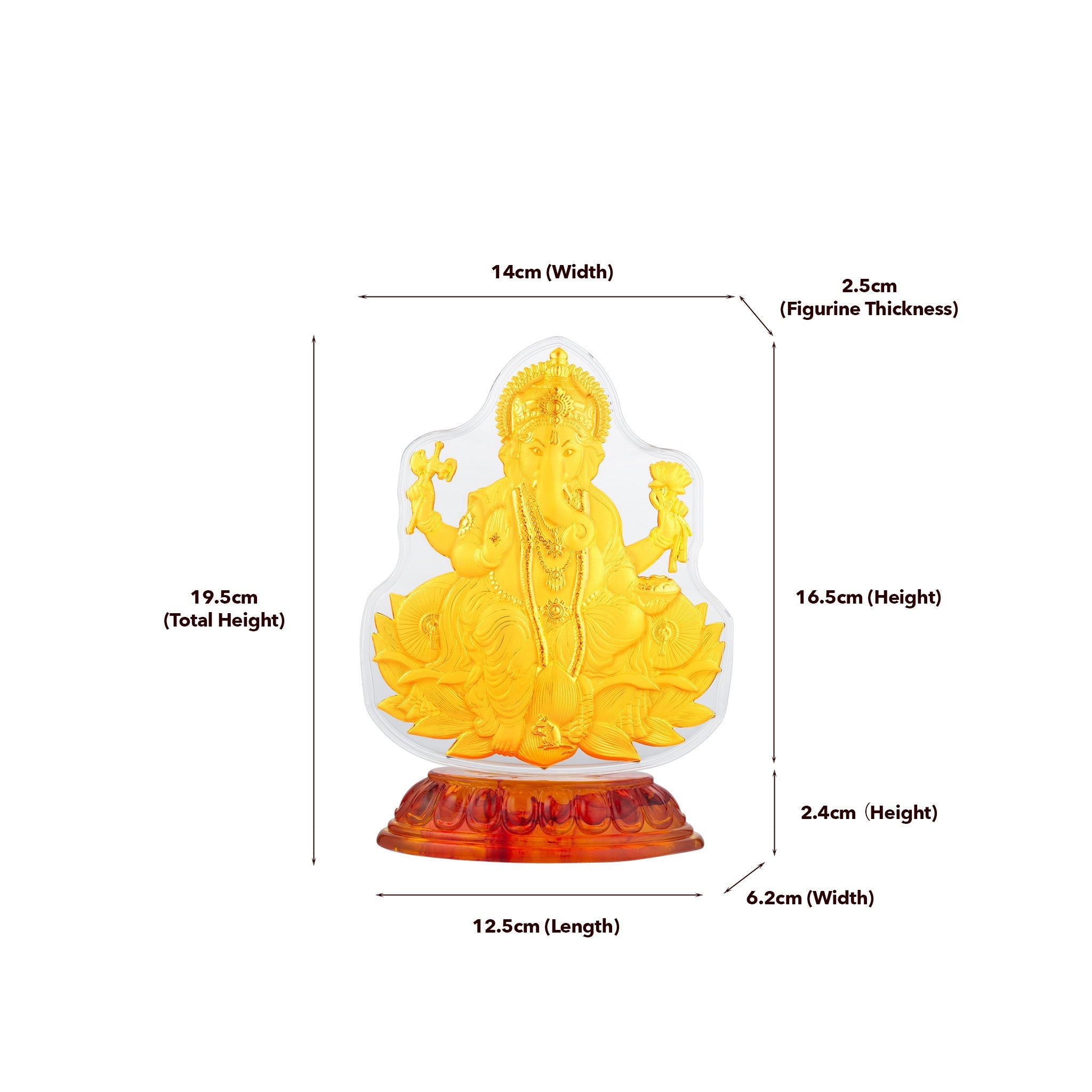 Lord Ganesha Figurine: 16.5cm (Length) x 14cm (Width) x 2.5cm (Thickness)