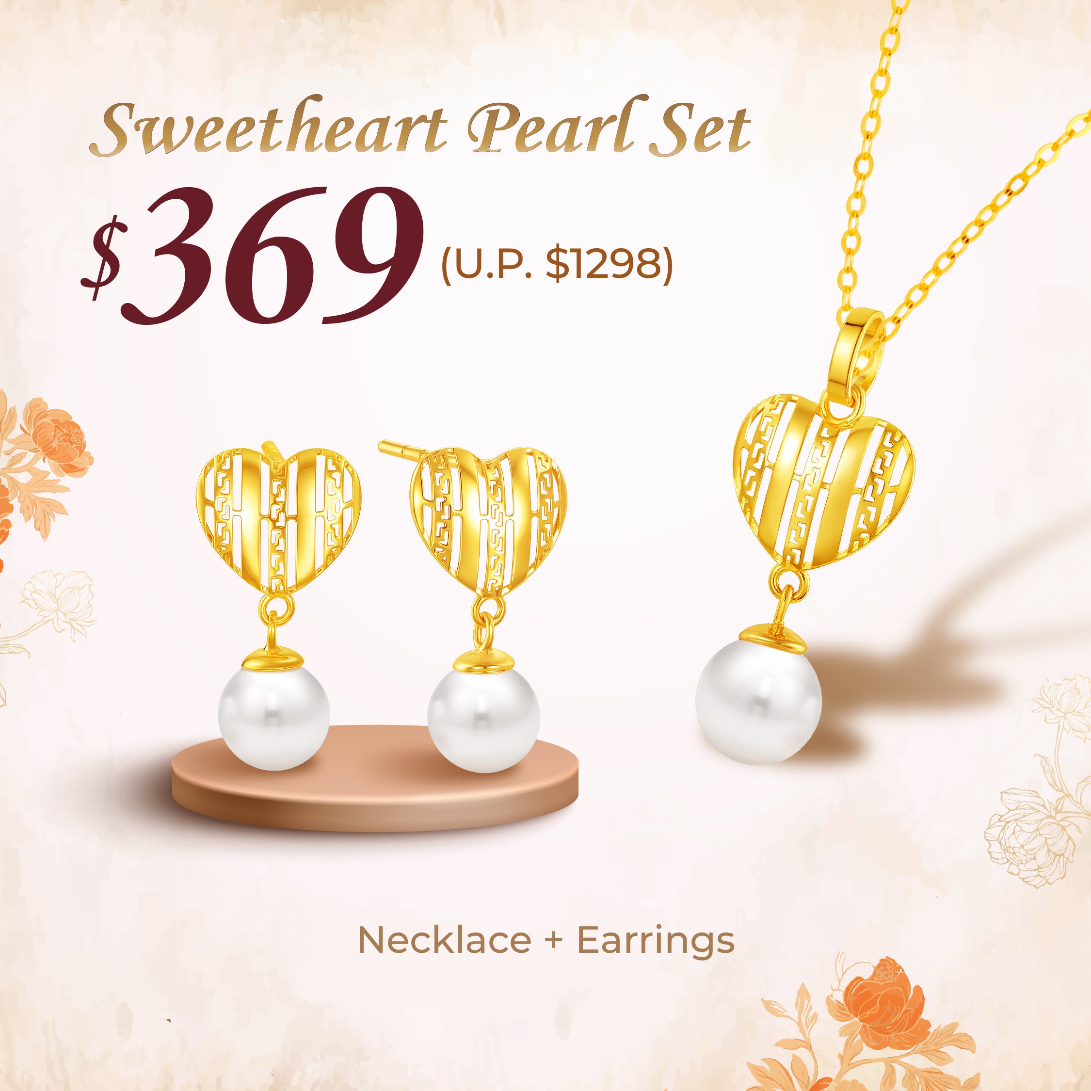 - 1 x MoneyMax Jewellery 10K Gold Sweetheart Pearl Earrings (MPE070/MPP214)