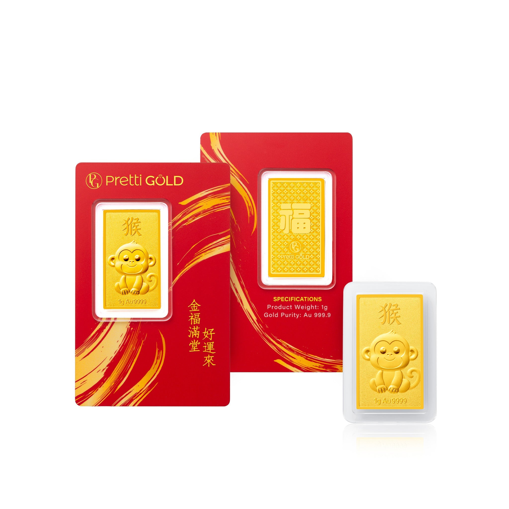 1 x MoneyMax Jewellery 999 Gold 十二福星 12 Lucky Treasures Zodiac Pretti Gold Bar (BAR064)