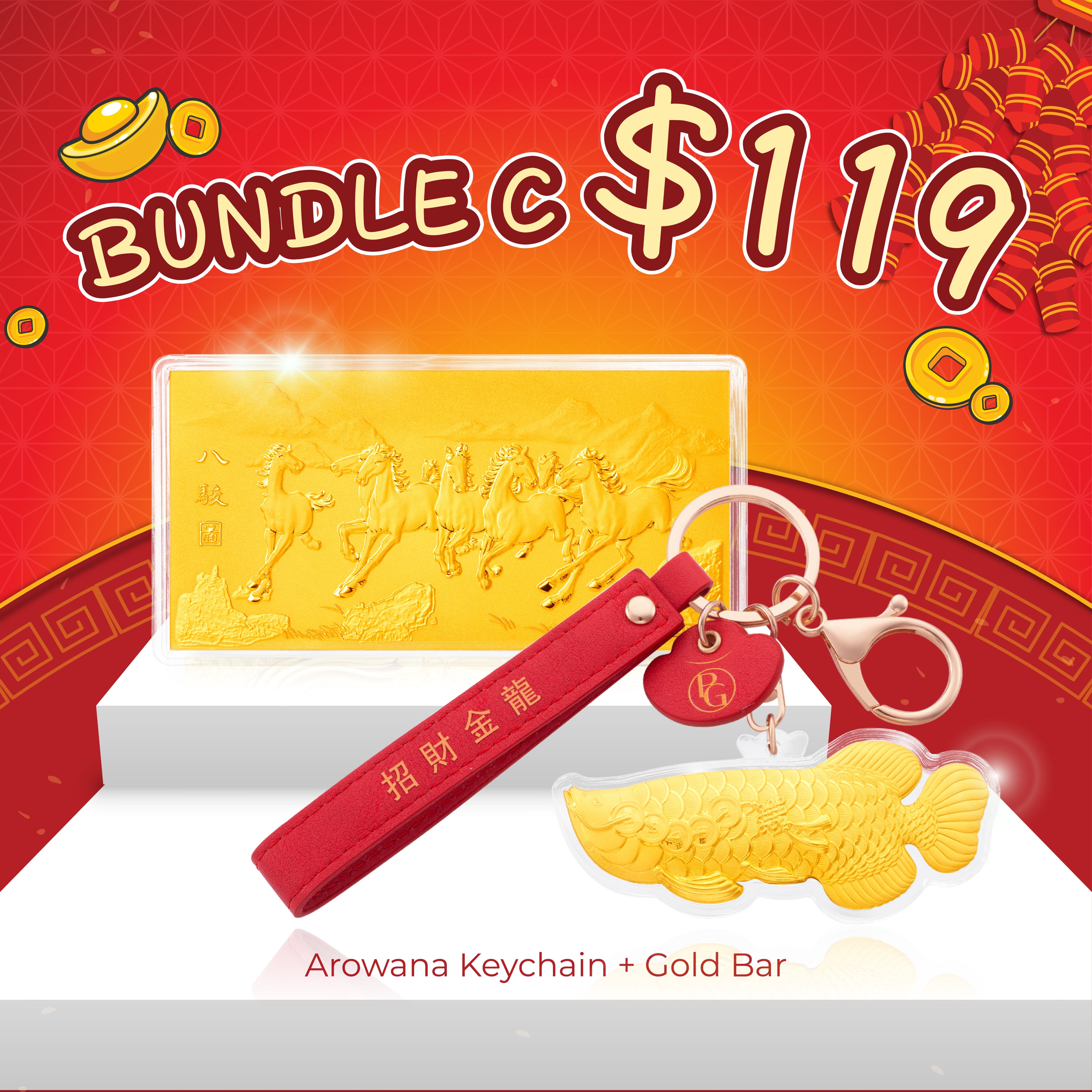 View Cart999 Gold 招财金龙 Arowana Keychain Bundles