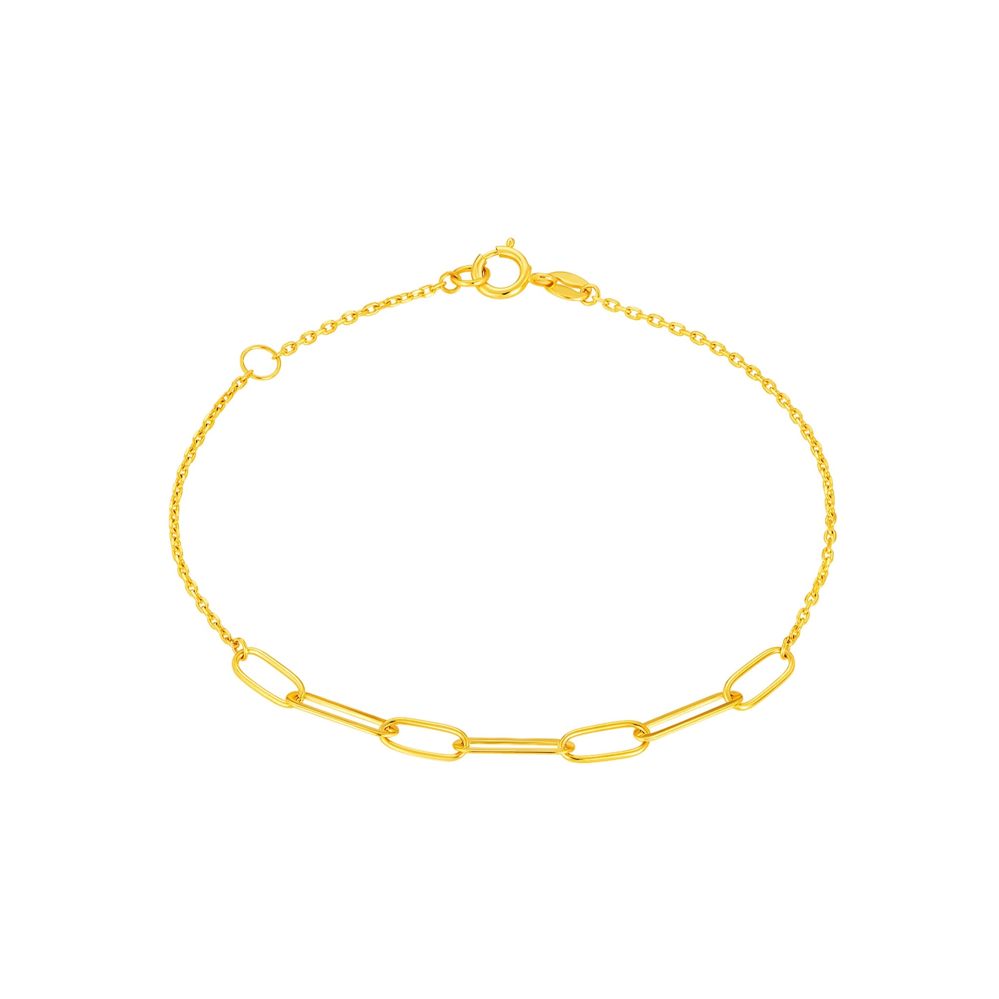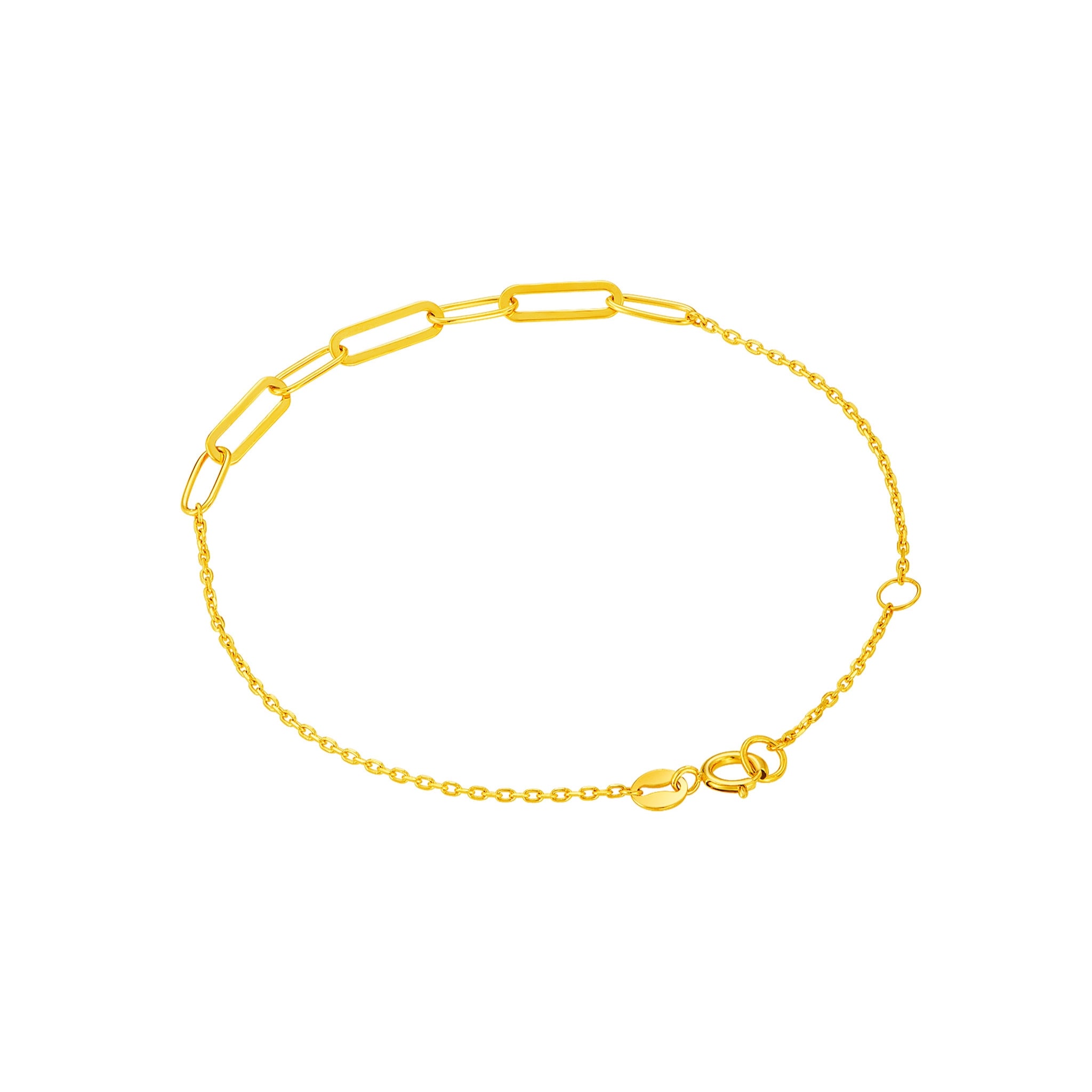 Elevate your everyday elegance with the Eterna Link Bracelet, expertly crafted in radiant 14K gold. Its refined link-and-chain design creates a subtle play of light and movement, reflecting timeless sophistication with a modern twist. Perfect for layering or wearing alone, this bracelet adds a graceful shimmer to any outfit.